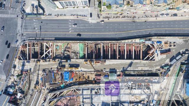 目前世纪大道站(3号线部分)主体结构已全部完工,与其换乘的18号线部分正进行基坑土方开挖。