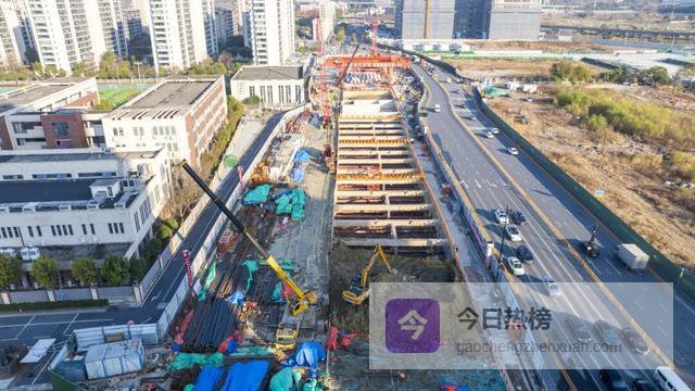 临平站东西两侧基坑正有序开挖,人民大道站主体结构顺利完工。
