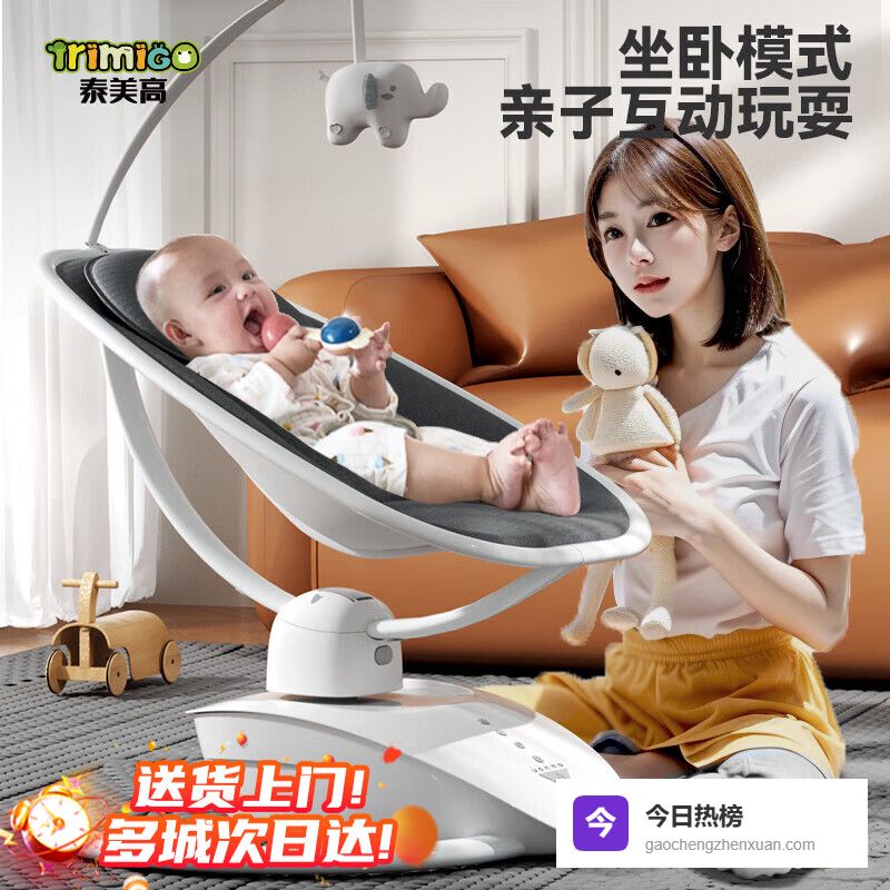 推荐理由:Trimigo升级款婴儿摇椅,真的是哄娃神器!它拥有14项贴心设计,比如横向左右摇摆、三档摆幅、科学坐躺和透气面料等,让宝宝在摇篮般的呵护中安然入睡。最让我惊喜的是,它还有远程遥控功能,妈妈们再也不用抱着宝宝摇晃了,省心又省力。而且,它还支持蓝牙音乐,让宝宝在美妙的音乐中进入梦乡。