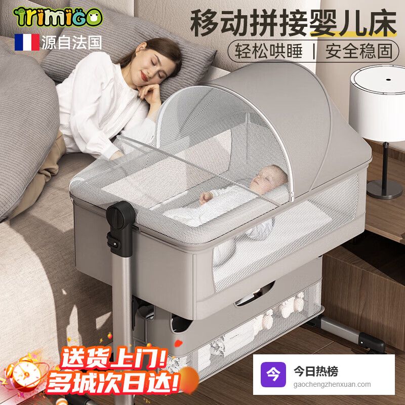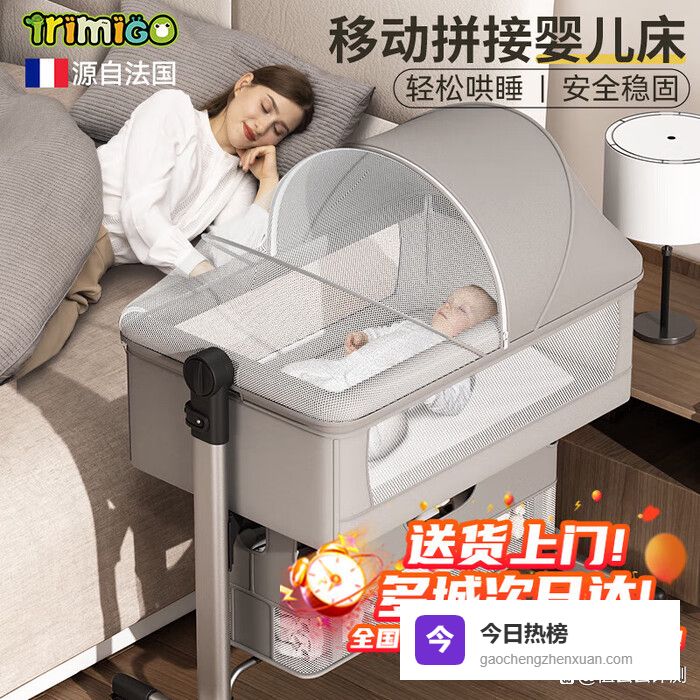 推荐理由:Trimigo婴儿床折叠拼接新生儿床,绝对是带娃神器!55-60cm宽,轻松穿过小门,静音万向轮推行不费力,带娃出门也不成问题。更重要的是,床体5°倾斜设计,能有效防止宝宝呛奶,三角稳定结构防止侧翻,宝宝更安全。而且,大空间设计,让宝宝自由翻身活动自如,健康好睡眠不是梦。亲们,这款婴儿床真的值得拥有!