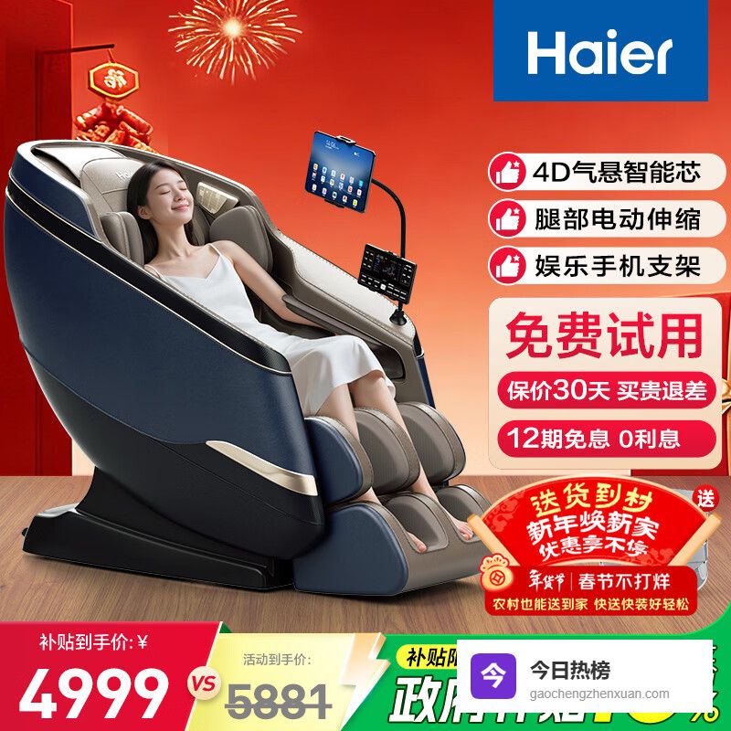 海尔(Haier)按摩椅十大品牌家用全身按摩太空舱肩颈腰背电动按摩沙发老人用送父母生日礼物HQY-A319ProLU1¥