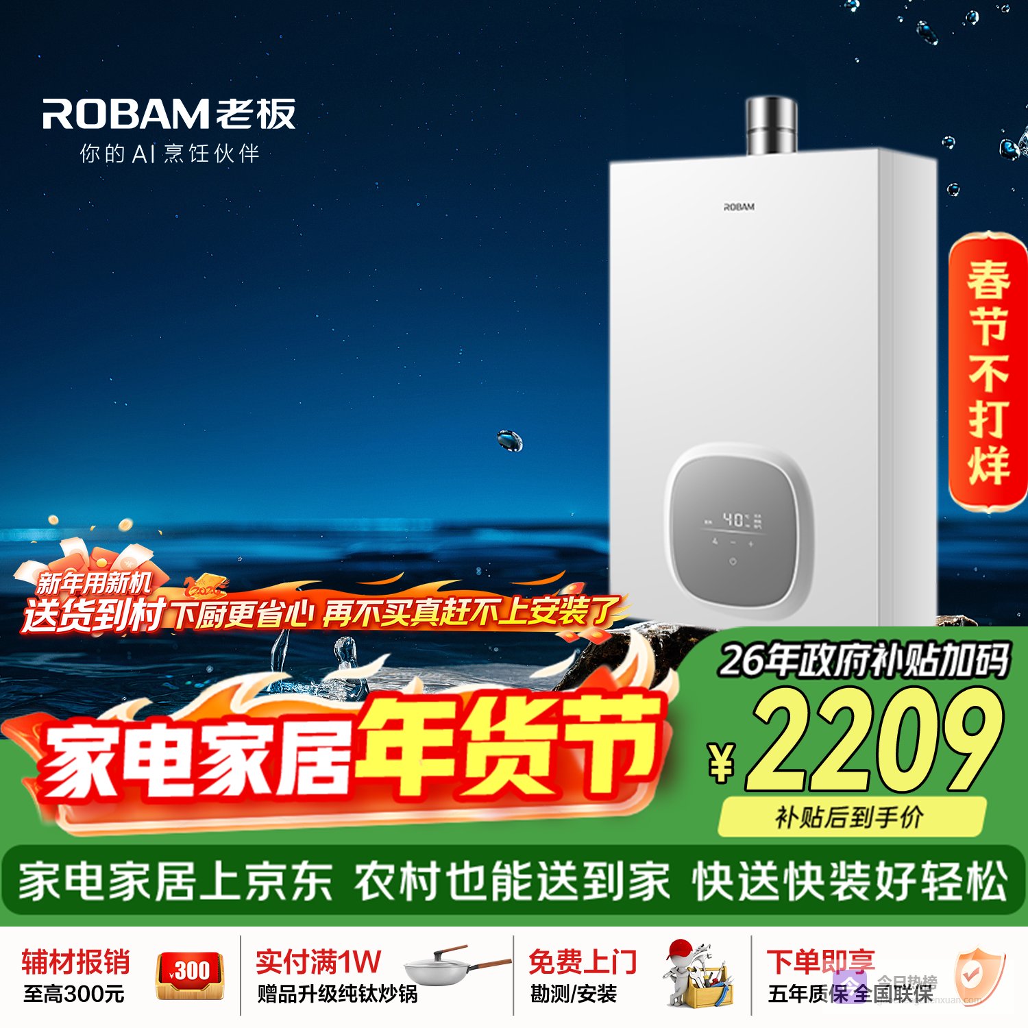 六、老板特点:智能控温、零冷水、节能省气、超防冻