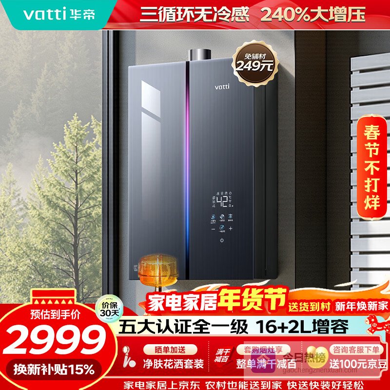 推荐理由:这款华帝燃气热水器,确实挺实用的。它拥有16升和18升两种容量选择,基本可以满足家庭多点用水的需要,也不用担心水不够用。恒温控制做得还不错,洗澡时水温稳定,不会忽冷忽热,让你享受更舒心的沐浴体验。