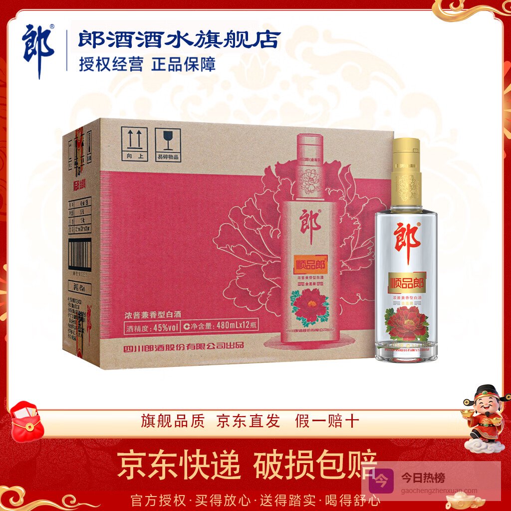 郎酒顺品郎金盖 45度480ml浓酱兼香型白酒 旗舰正品口粮酒 480mL 12瓶 【非原箱】¥