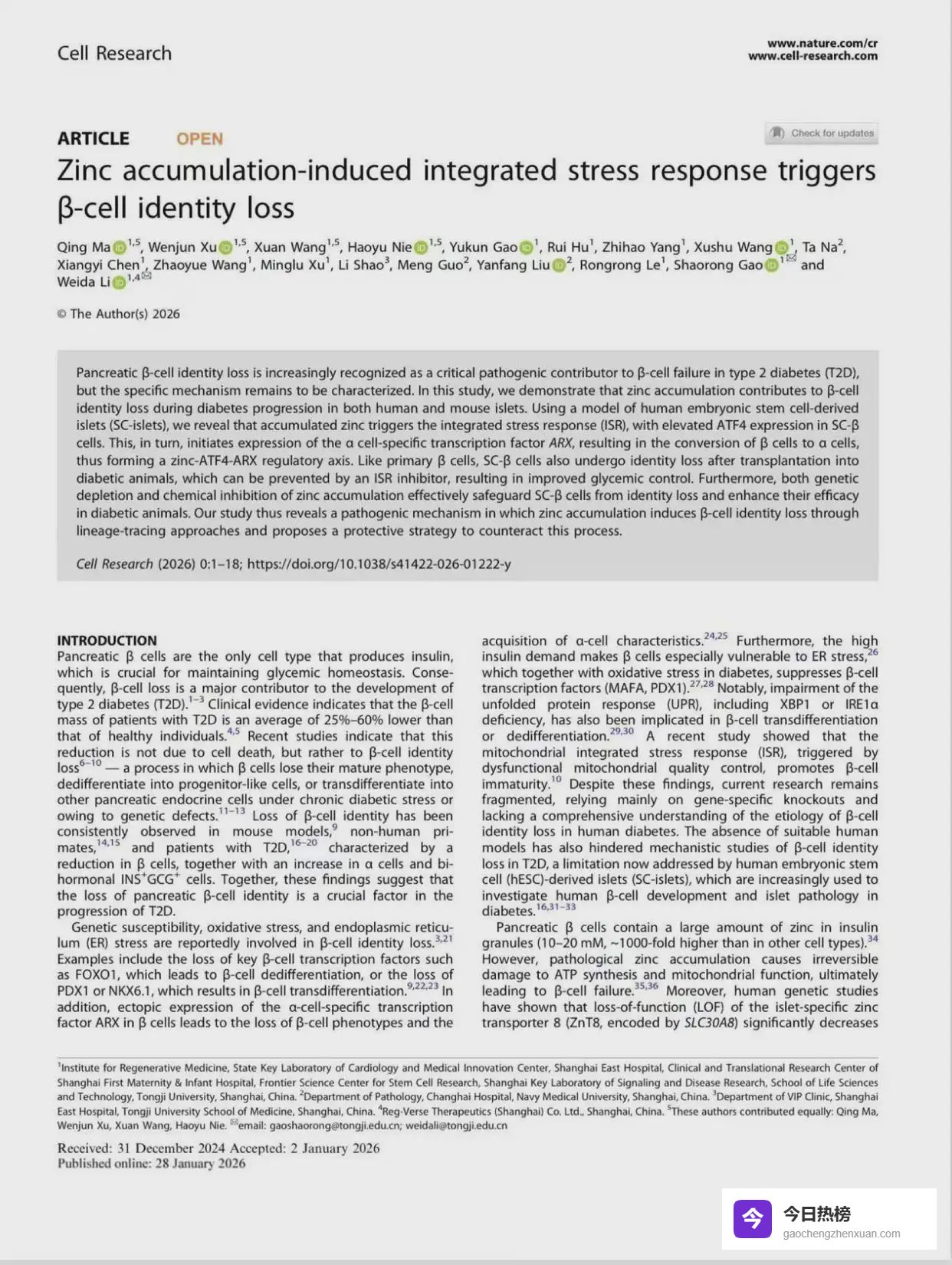 “该研究不仅深化了领域内对胰岛β 细胞身份可塑性的认识,也为理解β细胞在移植后功能衰退提供了关键机制解释。”北京大学基础医学院徐成冉教授认为,围绕锌稳态失衡及持续应激信号这一通路的遗传或药理学干预,能够增强胰岛类器官在病理环境中的耐受性与功能持久性,为糖尿病细胞治疗从“短期替代”迈向“长期稳态重建”奠定了重要的理论基础。