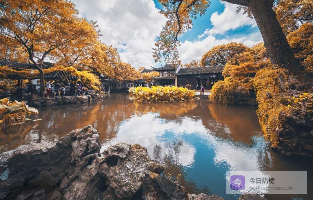 古典园林是苏州秋的“压轴节目”。拙政园的红枫倒映在水心,像一枚枚邮票;留园的桂香把奇石都熏得柔软;狮子林的假山缝隙里,阳光被叶片切割成碎金—— 一步一景,一窗一画。若把镜头拉近,你会发现连瓦檐下的蜘蛛网都挂满了秋色,仿佛大自然亲手布置的微型展览。