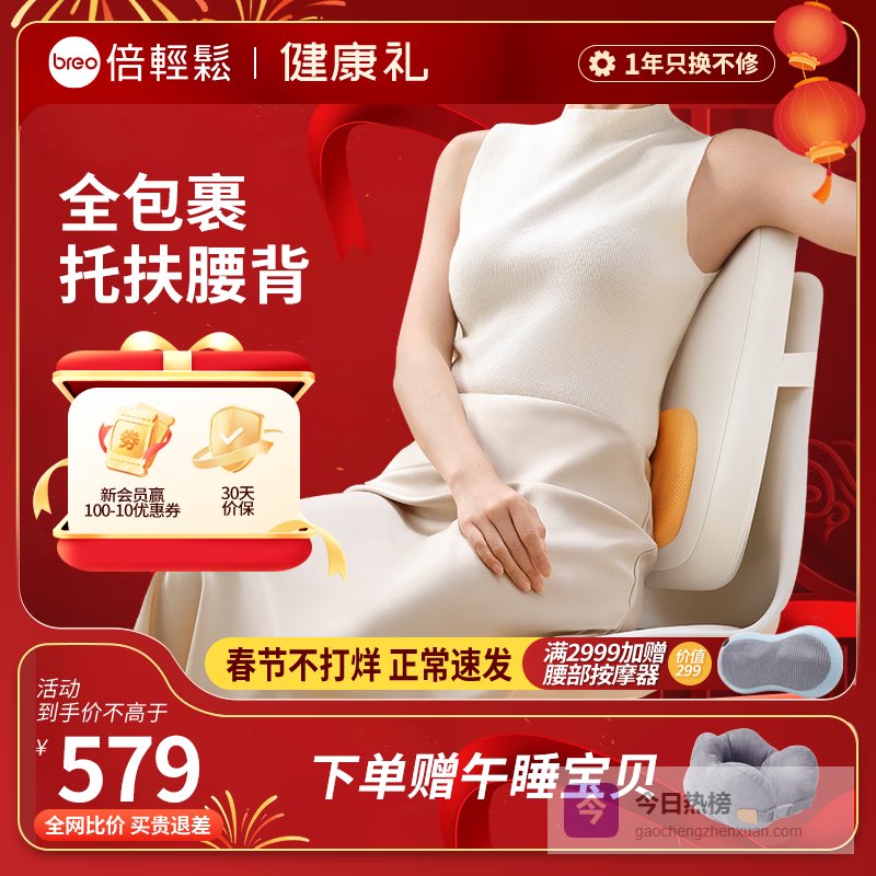 5、倍轻松(breo)腰部按摩器颈椎热敷按摩仪送爸妈长辈睡