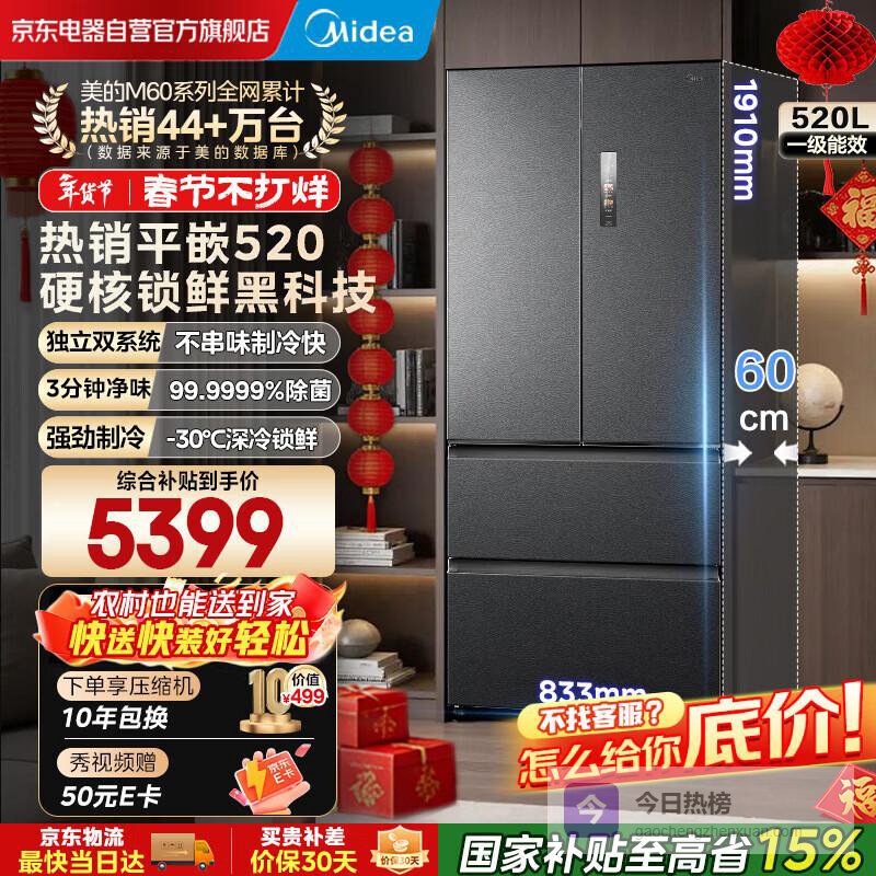 1. 美的M60小机皇520法式多门冰箱