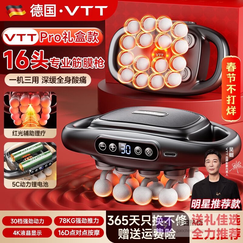 第1款:VTT 16头Pro款十六头大面积:这个按摩器最吸引人的地方就是它有16个按摩头!确实能覆盖更大的面积,像后背、大腿这种地方,一下就能按到很多肌肉,感觉比那种只有一个头的效率高多了,按摩起来更舒服。