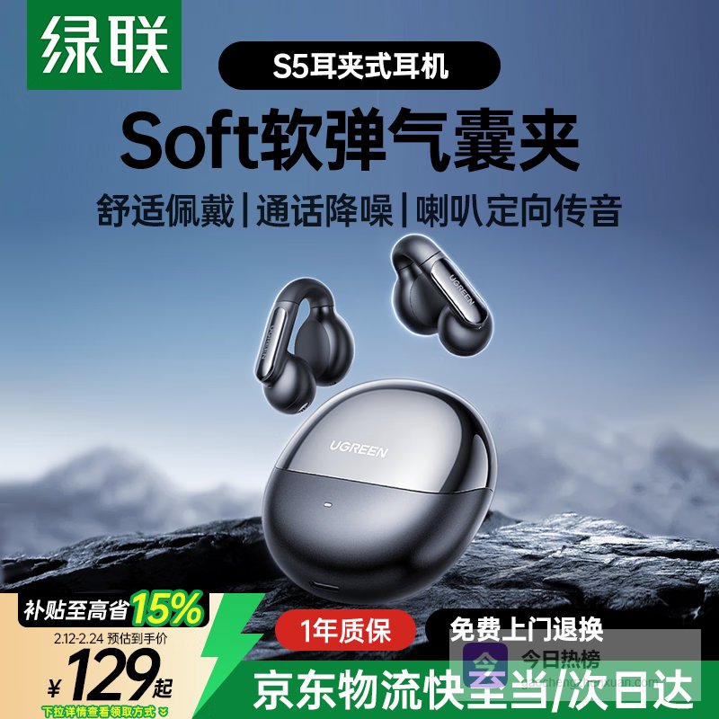 【京东自营】绿联HiTuneS5蓝牙耳机气骨传导概念高清通话耳夹式开放式不入耳运动跑步通勤适用于苹果¥