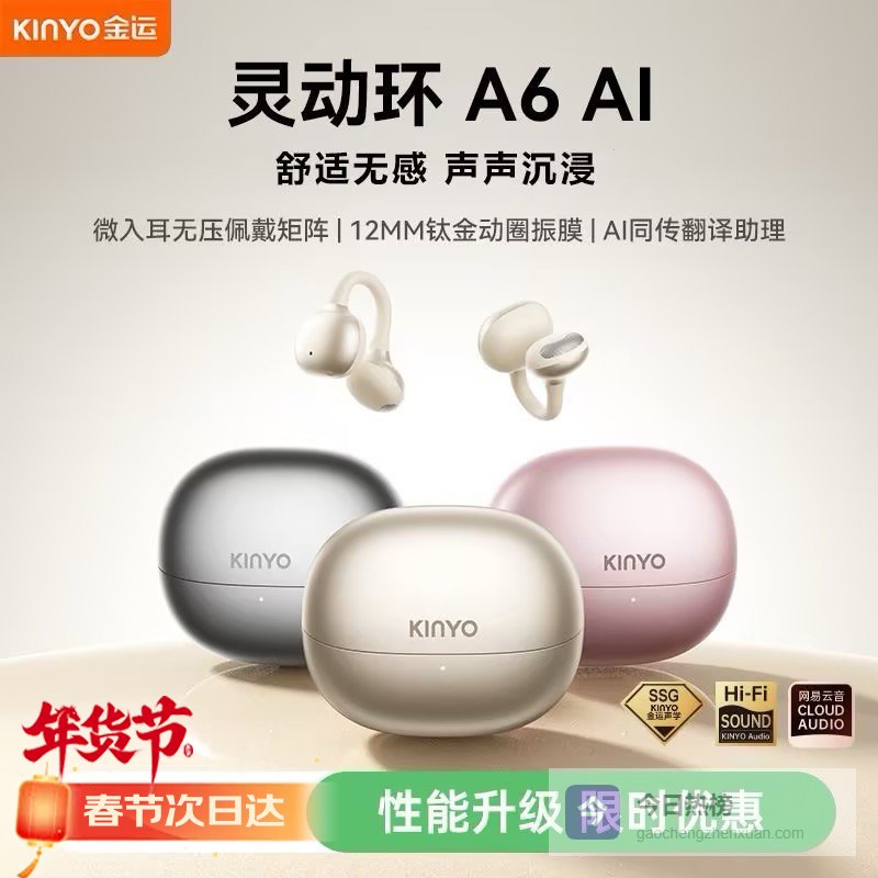 【京东自营】金运【2026舒适升级丨A6Ai灵动环】蓝牙耳机夹式骨传导概念无线开放跑步运动通话长续航¥