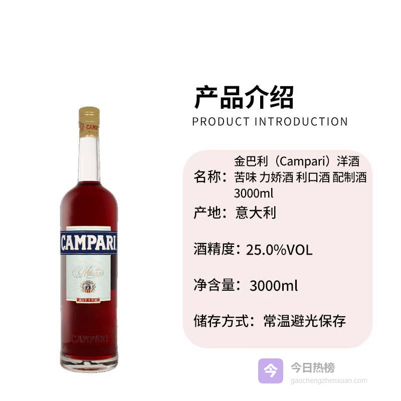 推荐入手:金巴利苦味力娇酒3000ml