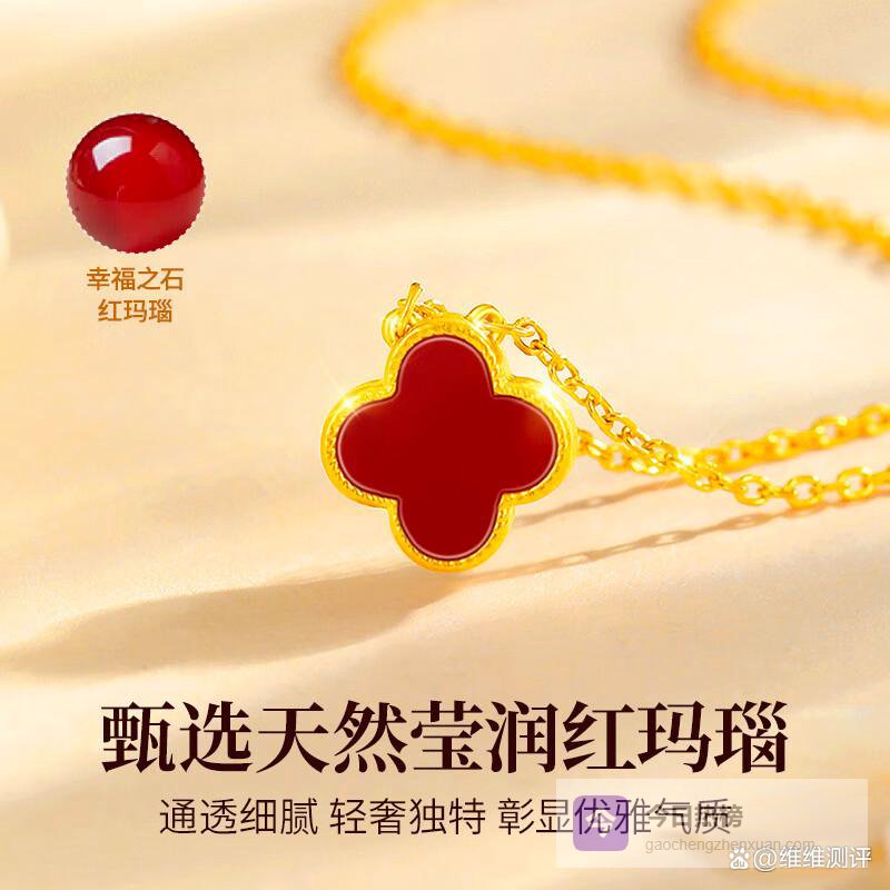 【京东自营】礼意久久玛瑙999黄金四叶草项链女款生日礼物女生38女神节礼物妇女节老婆¥