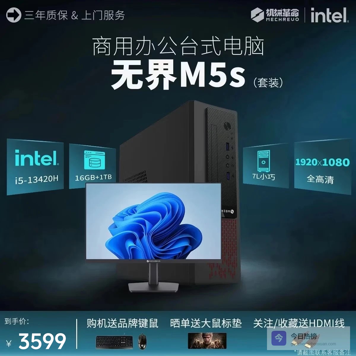机械革命 无界S500/M5s/M7s系列i5/i7商用办公台式电脑主机套装23.8英寸显示器套装 i5-13420H/16G/1TB SSD定制版 单主机+23.8英寸显示器¥