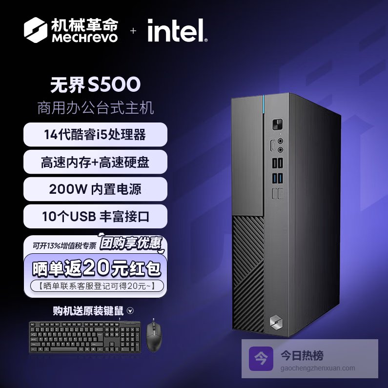 机械革命(MECHREVO)无界S500/M5S 商用办公家庭娱乐台式机电脑主机 酷睿i5 高速固态 WIFI6+蓝牙 三年上门迷你机箱 S500:i5-14450HX/16+1TB¥
