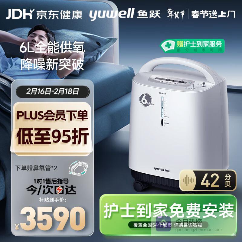 5️⃣ 鱼跃(Yuwell)制氧机医用吸氧机家用老人5L升级氧气机6L7F-6W中重度缺氧