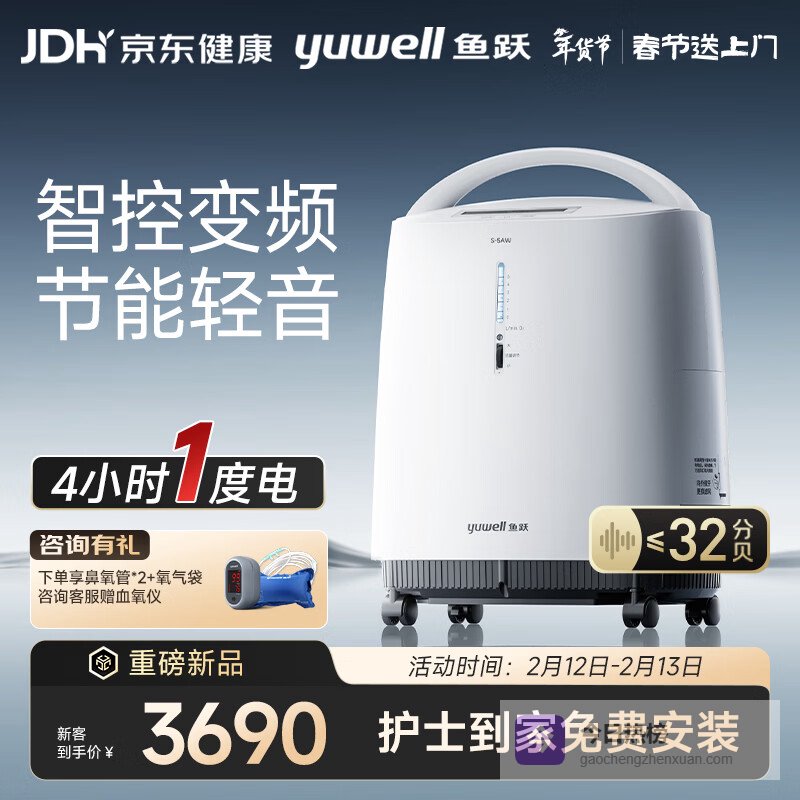 4️⃣ 鱼跃(Yuwell)制氧机S-5AW医用级5L升吸氧气机家用老人孕妇超轻音直流变频省电