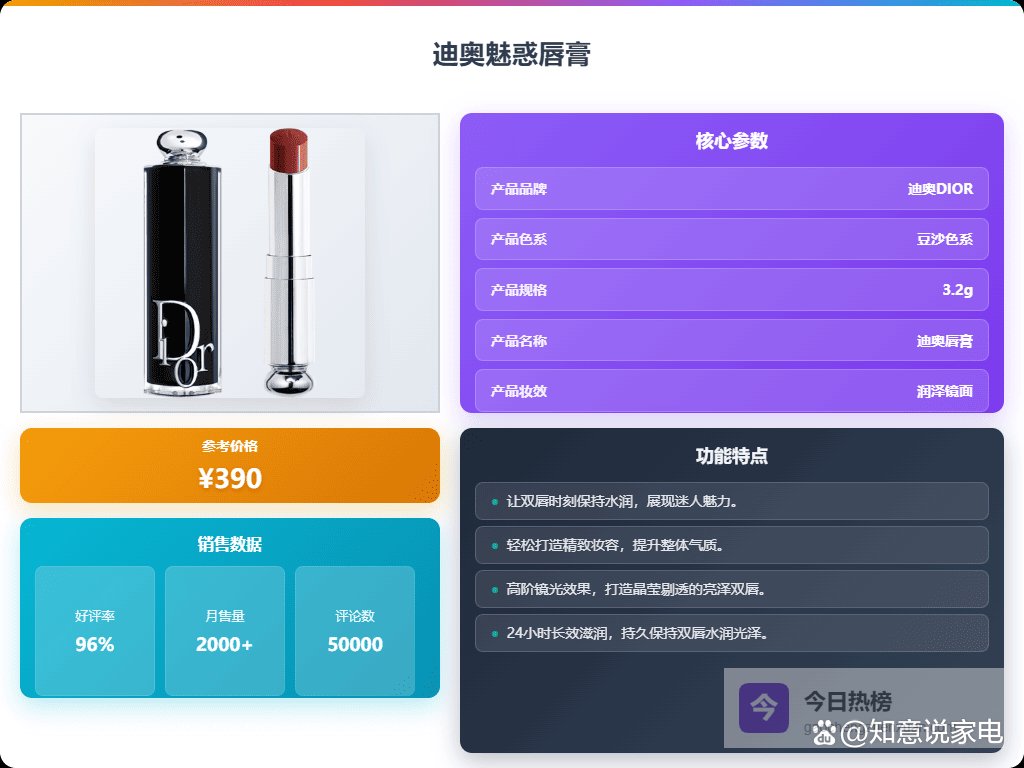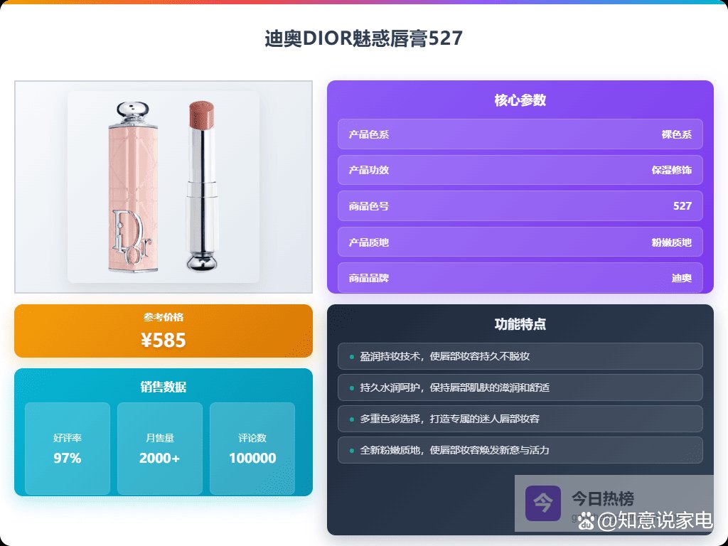 推荐理由:这款口红确实挺滋润的,能给双唇持续24小时的水润呵护,让你一整天都不用担心干燥脱皮。即使忙碌一整天,也不用频繁补妆,特别贴心。