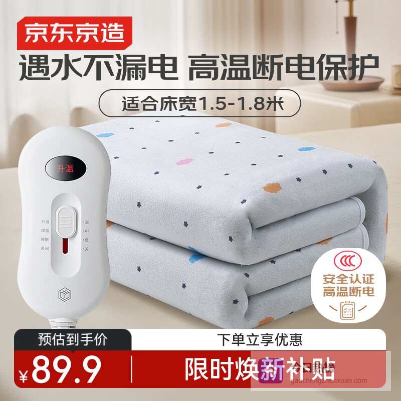 推荐入手:京东京造暖星电热毯 3挡调温双人款1.5x1.8m