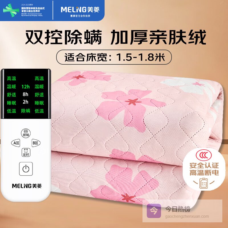 美菱【高温断电】双人定时双温双控除螨亲肤绒电热毯电褥子1.8*1.5米¥