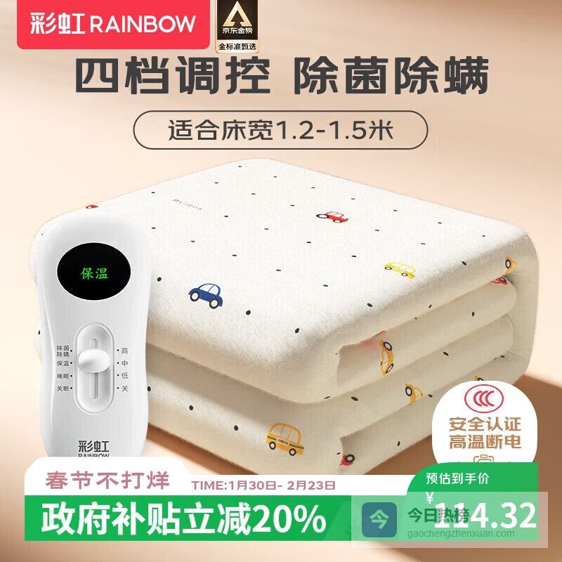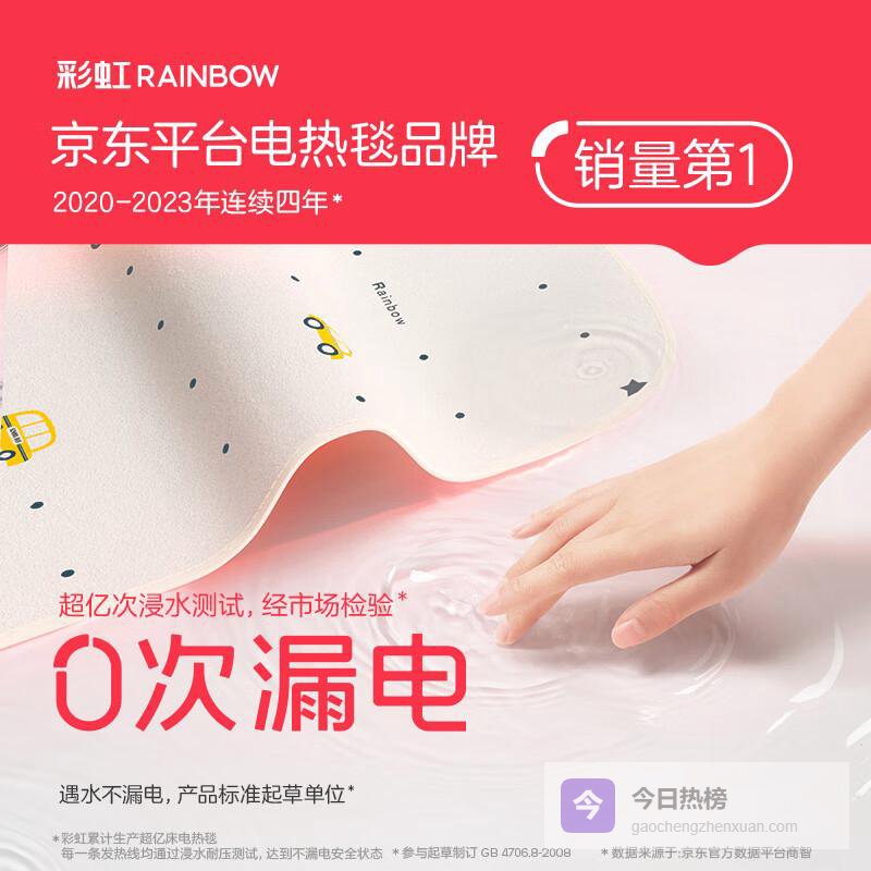【京东自营】彩虹【高温断电】双人除菌除螨小型宿舍无纺布电热毯电褥子1.5*1.2米¥