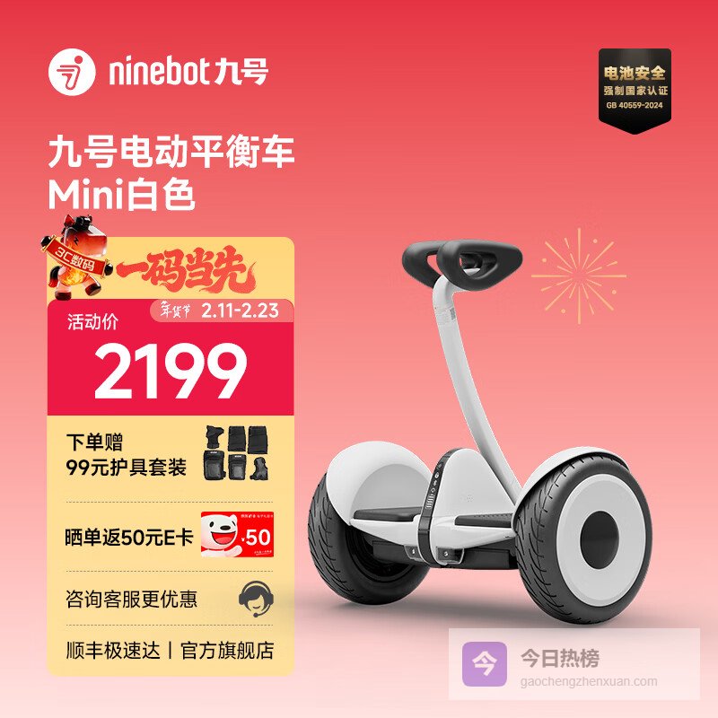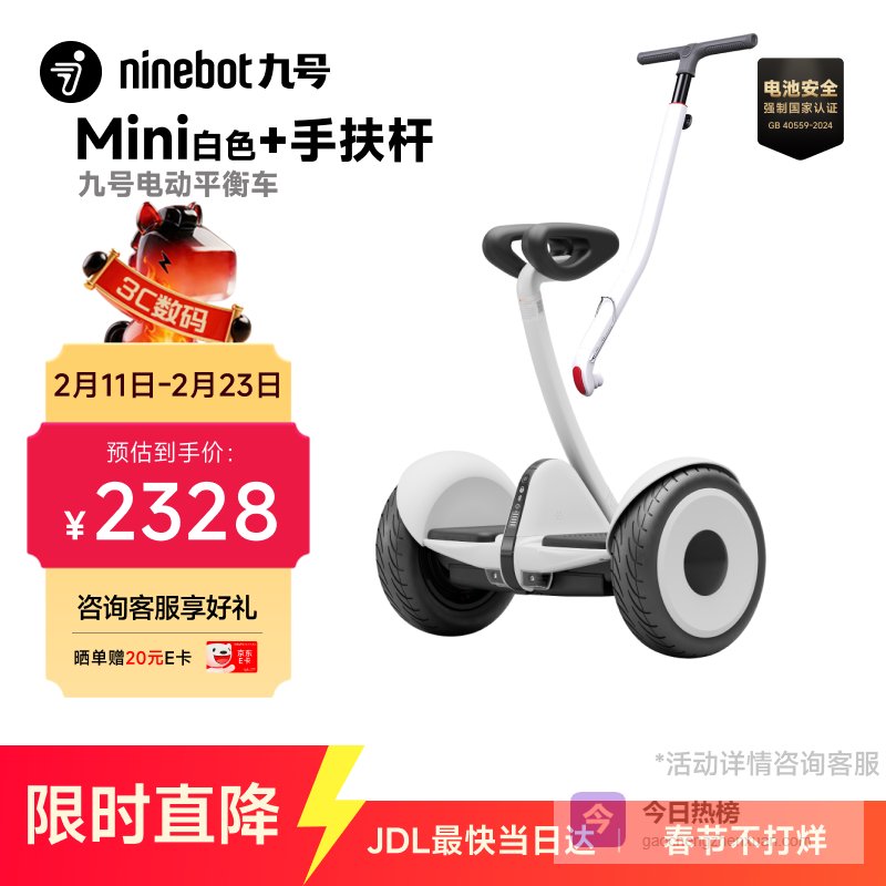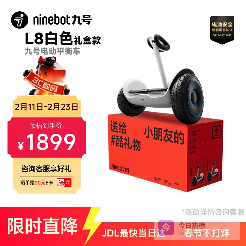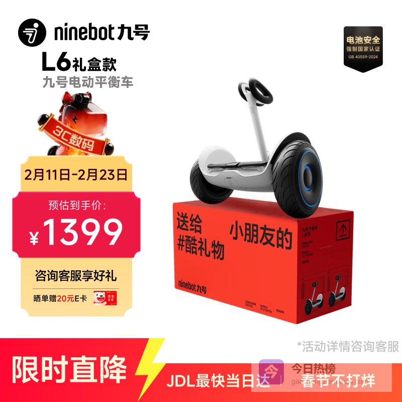 【京东自营】九号电动平衡车代步电动车腿控智能礼物双轮腿控体感L6白色定制礼盒款¥