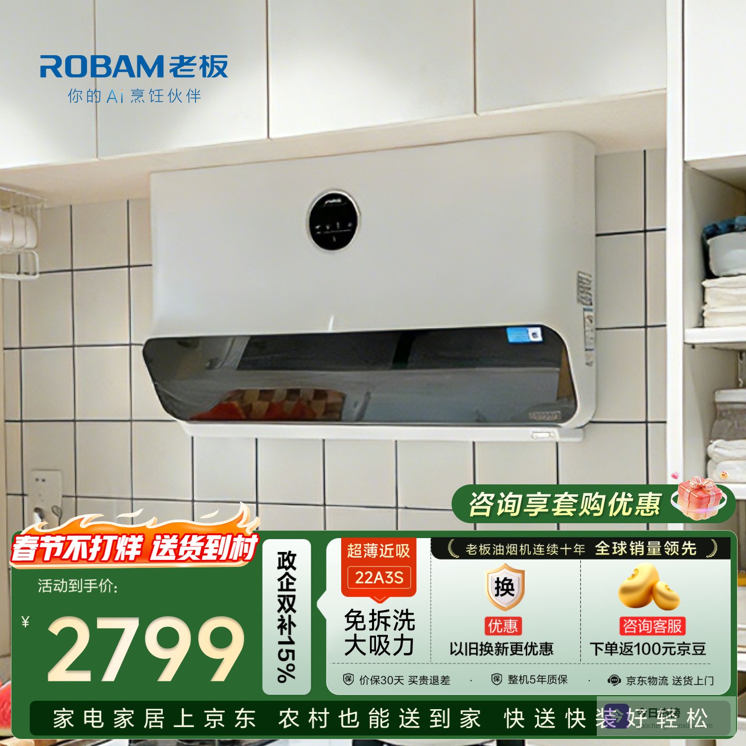 老板抽油烟机超薄变频23风量小尺寸白色油烟机家用大吸力 以旧换新国家补贴20%吸脱排油烟机22A3S¥
