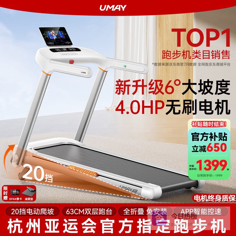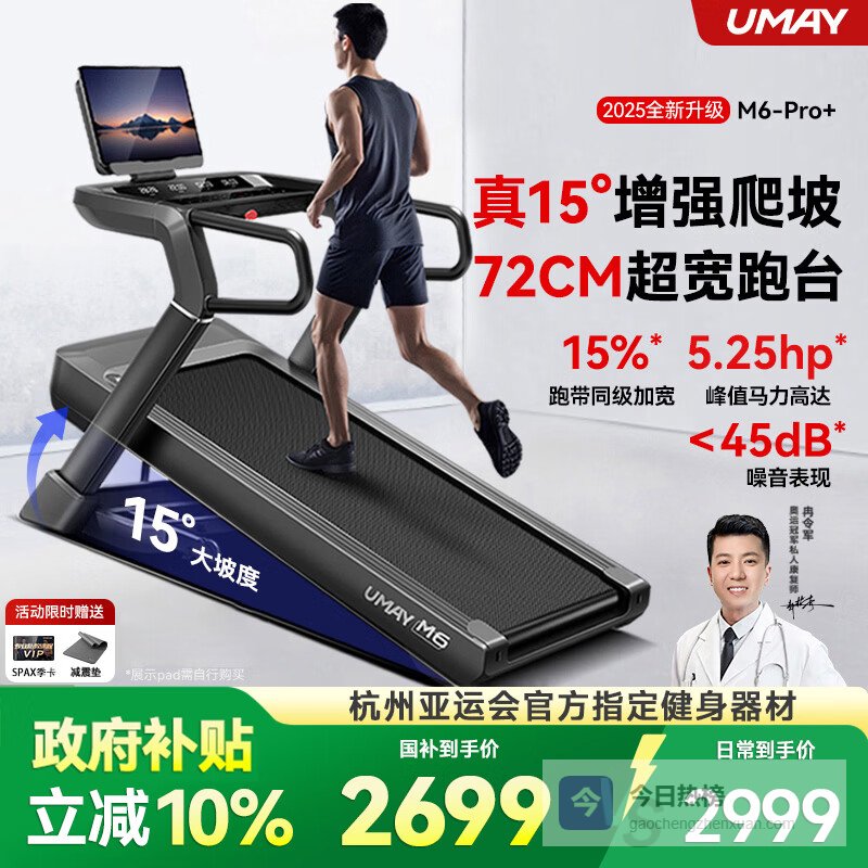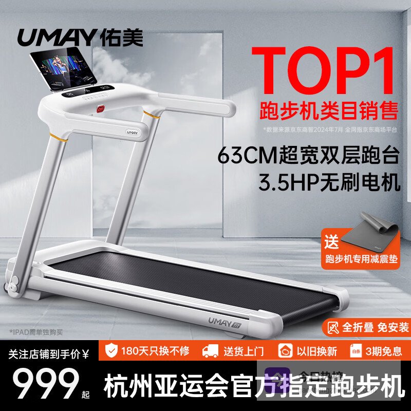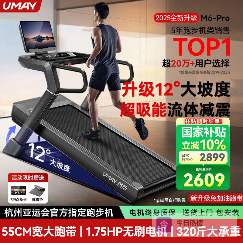 【京东自营】佑美M6Pro跑步机家庭用登山爬坡机折叠安静低音走步机高端健身房器材¥
