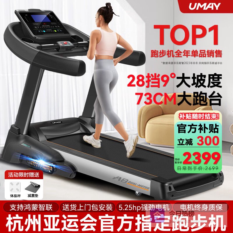 推荐二:佑美U2家庭用电动跑步机6°高性能版