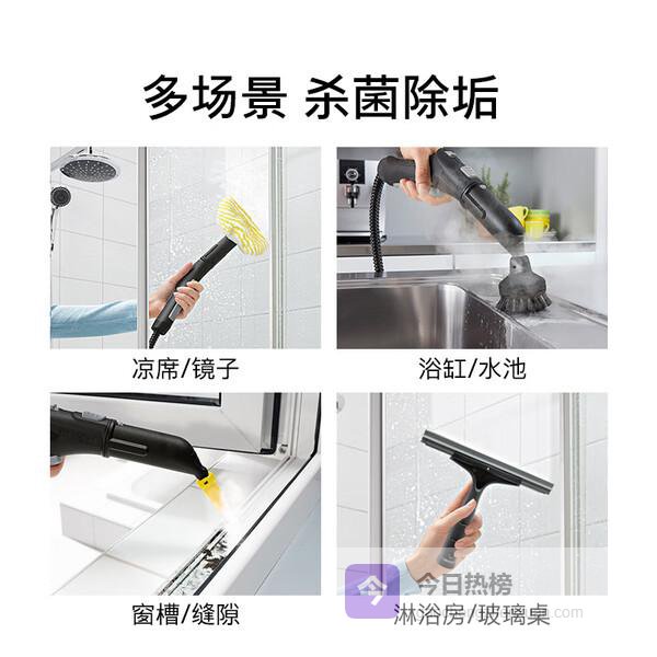 推荐理由:这款蒸汽清洁机一开机就能在30秒内达到工作温度,不用等很久,省时又方便。高温高压的蒸汽,能轻松杀灭99.99%的细菌和顽固油污,特别适合厨房、卫生间这些油渍和霉菌多的地方。