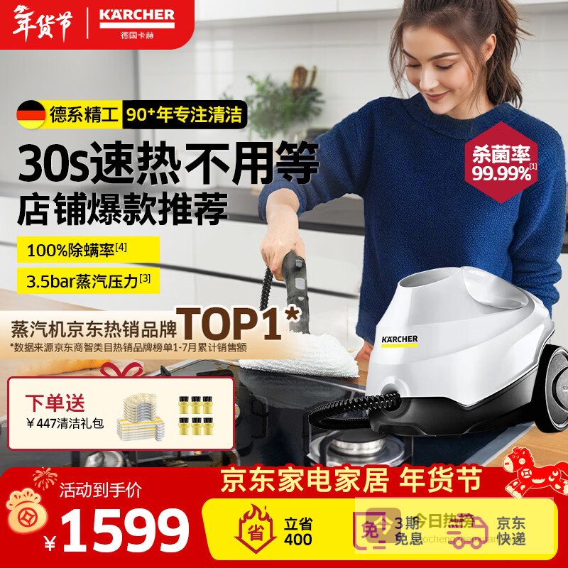 KARCHER家用速热多功能蒸汽拖把清洁机高温高压杀菌率99.99%洗地机扫地机器人吸尘器伴侣 SC3 标准版¥