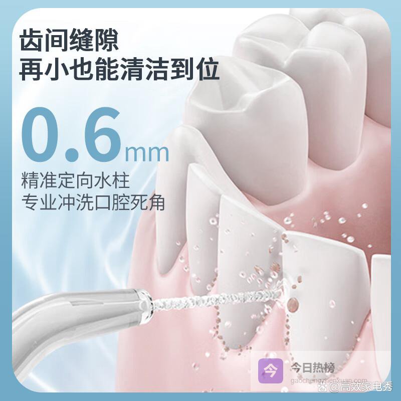 精准喷水技术:采用定磁旋转水流脉冲技术,能聚焦细微水流,轻松应对各种牙缝和难以清洁的部位。