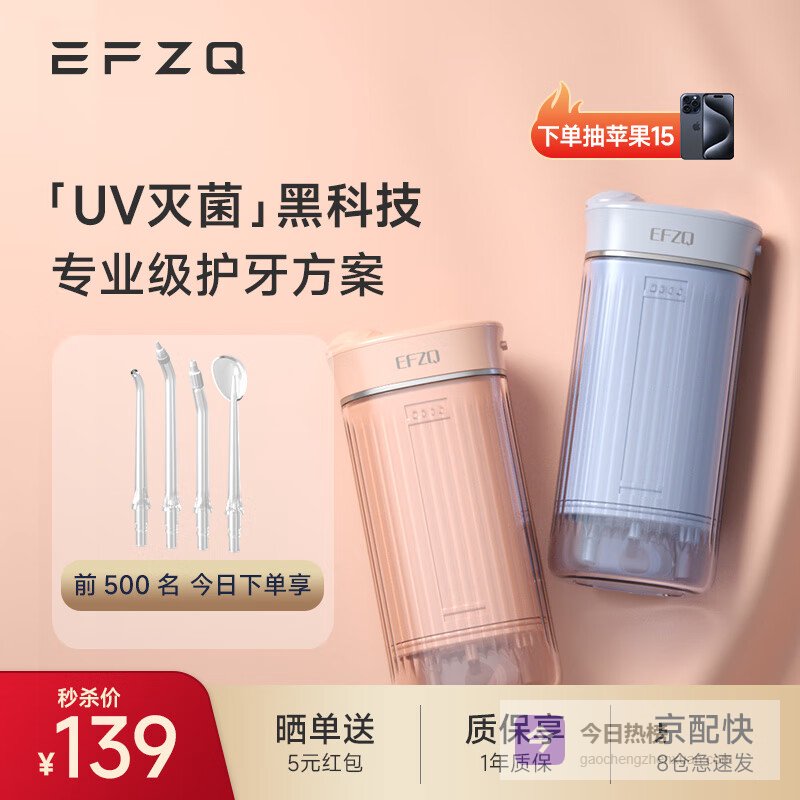 【品牌直营】EFZQ冲牙器洗牙器便携式水牙线家用电动牙结石正畸专用神器UV紫外线杀菌教师节礼物粉黛套¥