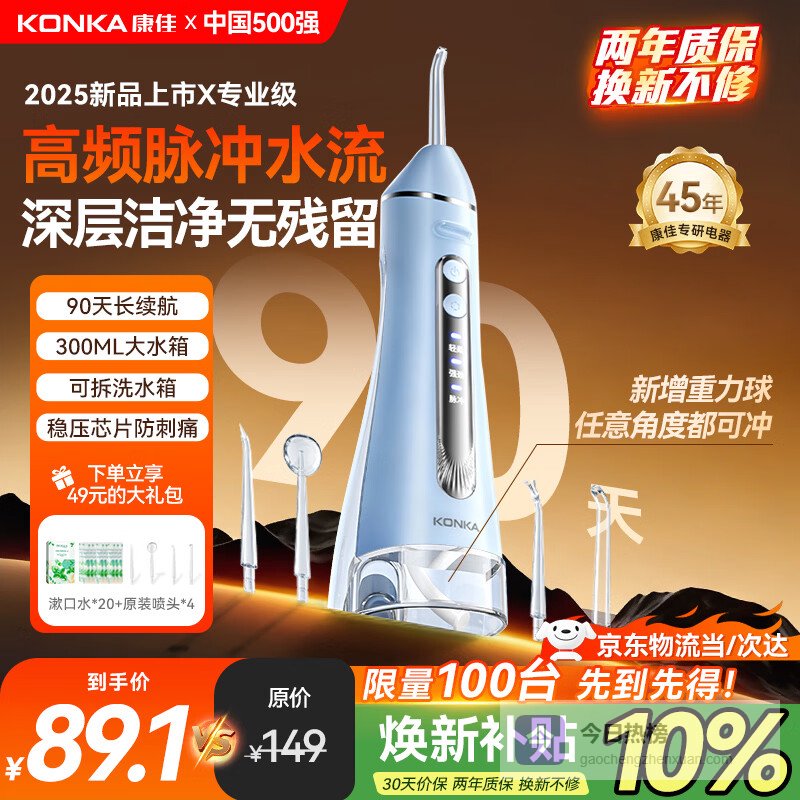 【京东自营】康佳冲牙器家用洗牙器洁牙器牙齿冲洗器水牙线立式便携式清洁正畸预防牙结石情侣生日礼物送女友¥
