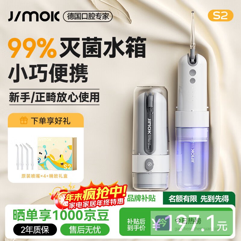 【京东自营】锦美客德国便携式冲牙器洗牙器UV杀菌消毒高效清洁不出血S2升级海盐灰¥