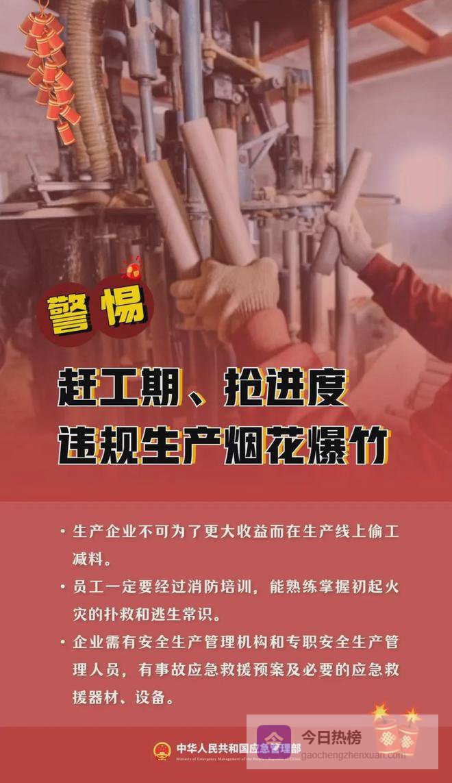 2. 企业切不可为了更大收益而在生产线上偷工减料,导致烟花爆竹质量不合格,烟花爆竹生产厂房严禁烟火,禁止携带火种进入厂房。