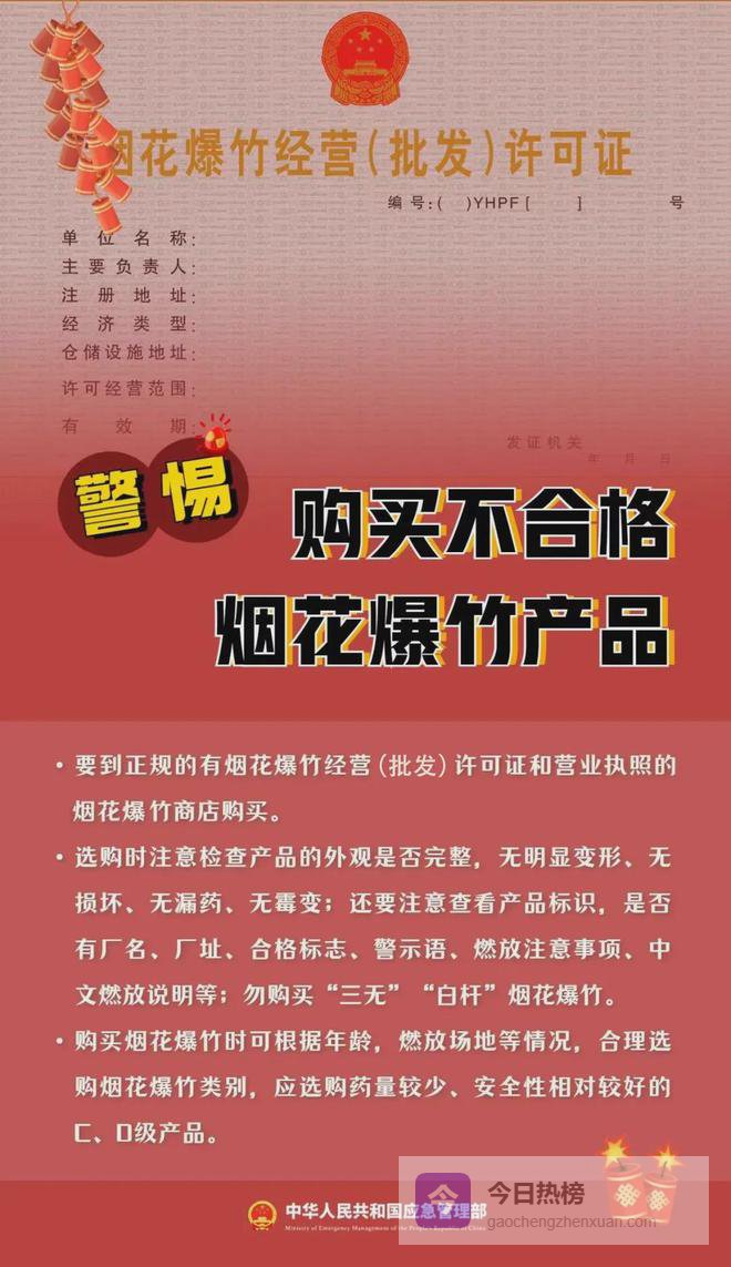 1. 购买时需选择有烟花爆竹经营许可证的经营点。