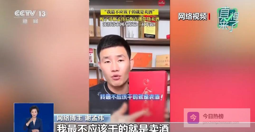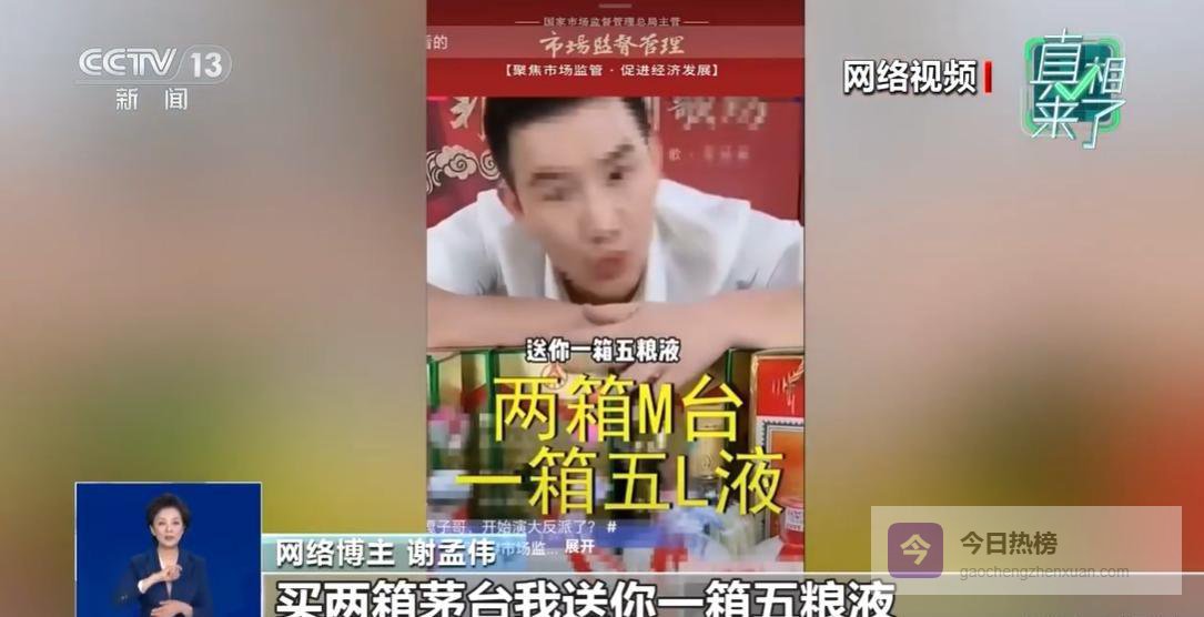 新闻里播了谢孟伟在直播间里情绪高涨卖酒的场景,市场监管部门查实后发现,谢孟伟直播间里卖的那些标着茅台和五粮液的酒,其实都是贴牌的假酒,是勾兑出来的。