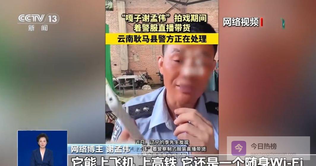今年九月,谢孟伟在拍戏的空档期,竟穿着警察的制服在直播间里推销商品,这种行为无视法律,还大放厥词。被网友举报后,云南耿马县的警方对他处以7天的行政拘留。