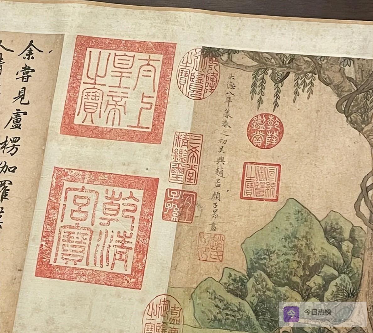 更为重要的是,他偏爱在书画作品上盖章题诗,将留白视作自己的领地。一件著名传世之作,经过他题写之后,密密麻麻,犹如公务文档的复印页,显得“又油又满”。