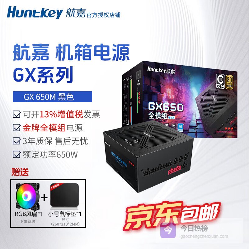 航嘉(Huntkey)gx750台式主机电源航嘉750w额定650w金牌全模组700w电脑电源800w宽幅gx850w电源atx3.1CPU超频eco GX650M黑【650W金牌】模组线材¥
