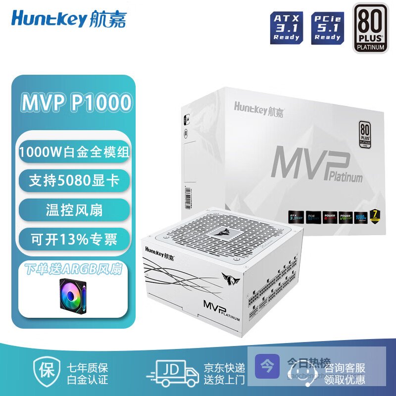 航嘉(Huntkey)mvp系列台式机金牌全模组电源 atx3.1/pcie5.0 电源额定K650/750/850/1000/1200W宽幅电压电竞电源 P1000白色【1000W白金】ATX3.1¥