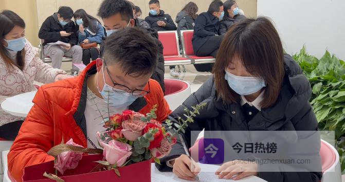 平日岳麓区婚姻登记处约30对/日, 今天网上预约+现场排队已突破270对,预计总量是平时的十倍。为应对高峰,登记处提前分流、一米线、测温验码、资料前置、窗口扩容、午间不停休,还备好红糖姜茶给排队的新人暖手也暖心。