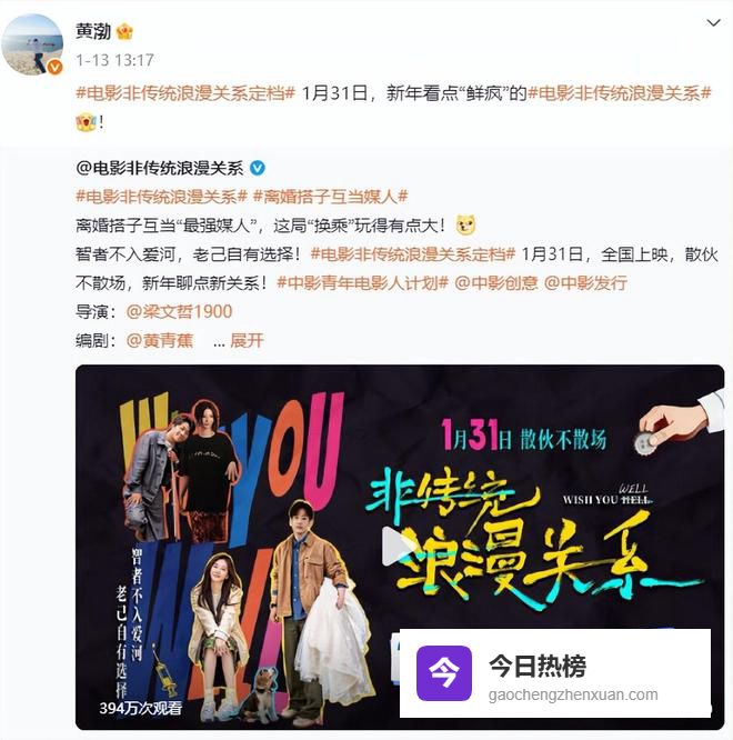 2026年1月,他难得更新社交动态,为好友定档1月31日春节档的新片宣传,还不遗余力地提携新生代演员。