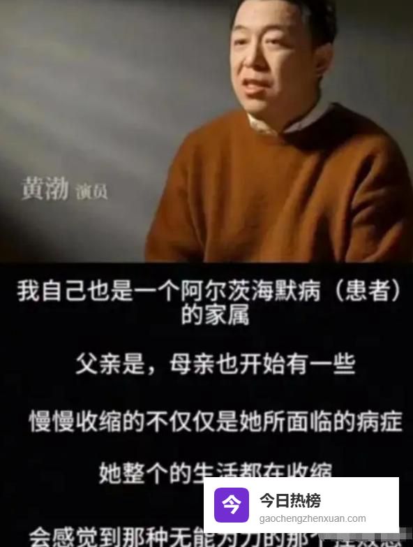 更让黄渤焦虑的是,阿尔茨海默症有家族聚集性,父母双双患病,让他不得不直面极高的遗传风险。