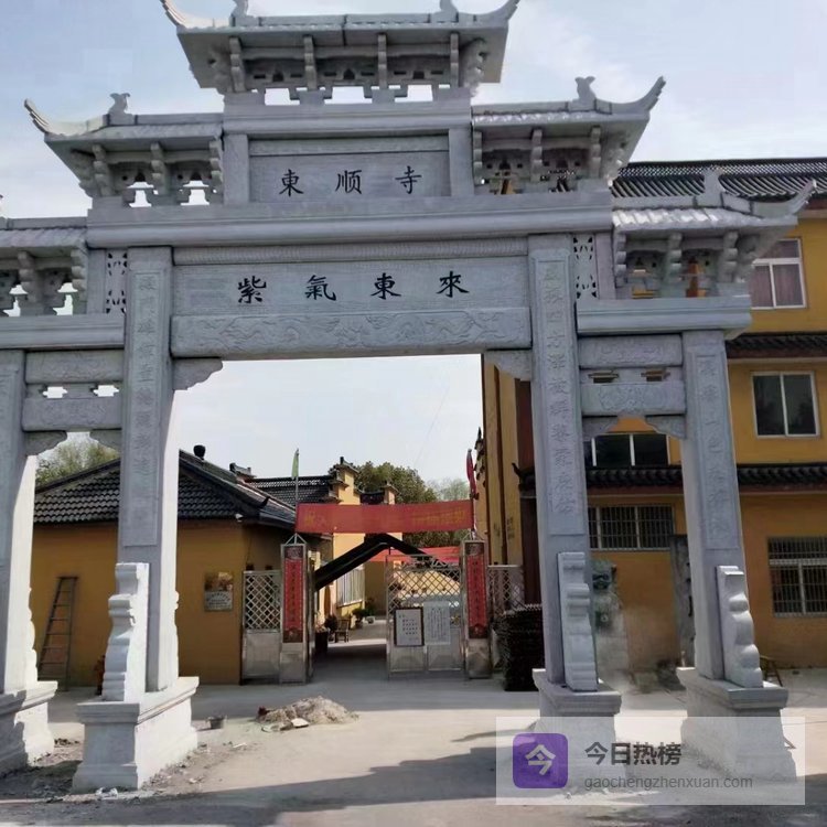 以花岗岩材质为例,其莫氏硬度达7.5,抗压强度可达1450MPa,能够承受自然环境中的温差变化、雨水侵蚀及人为触碰。制作工艺上,半手工半机械的加工方式既保留了传统雕刻的细节表现力,又通过机械辅助提升了结构稳定性。例如,6.5米高的牌楼需通过分层雕刻、整体拼接的方式完成,机械切割保证各部件尺寸精度,手工雕刻则负责纹理细腻度与造型美观度,最终呈现出门楼飞檐、祥云纹等传统元素。