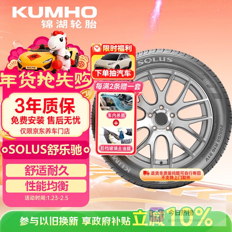 【京东自营】锦湖汽车轮胎215/50R1795VSOLUS系列适配名图/本田思域/标致24年¥