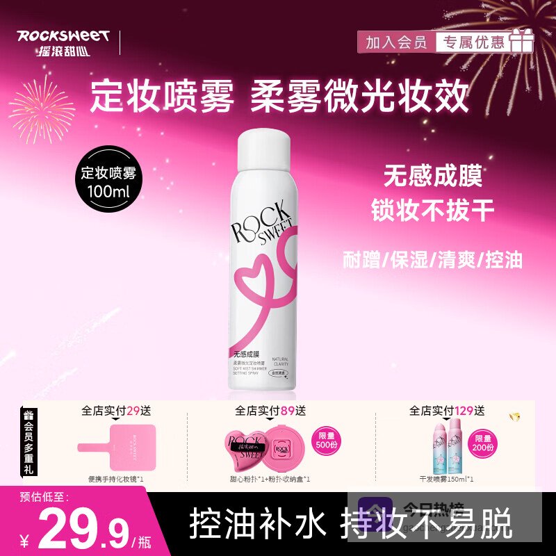 【品牌直营】摇滚甜心ROCKSWEET定妆喷雾持久定妆保湿控油快速不脱妆防水防汗不拔干【新年礼物】1¥