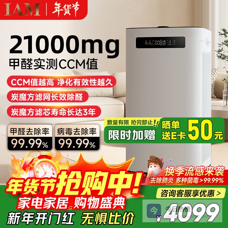 【京东自营】IAM空气净化器除甲醛雾霾细菌病毒过敏源家用负离子卫健委备案消毒机炭魔方3年长效分解甲醛¥
