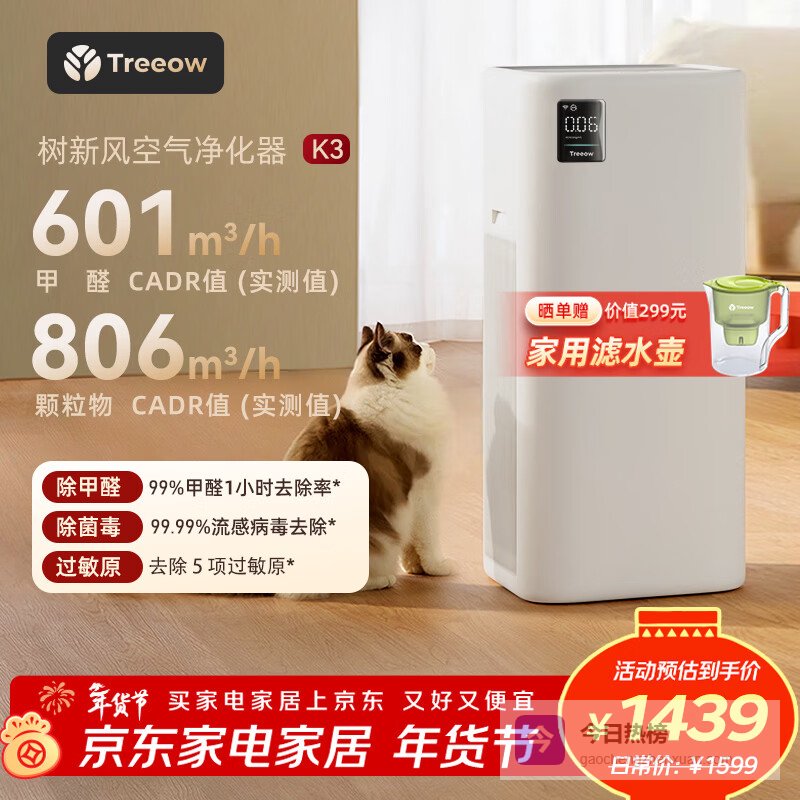 【京东自营】树新风空气净化器除甲醛异味除过敏认证家用宠物大空间全效K3净化器¥